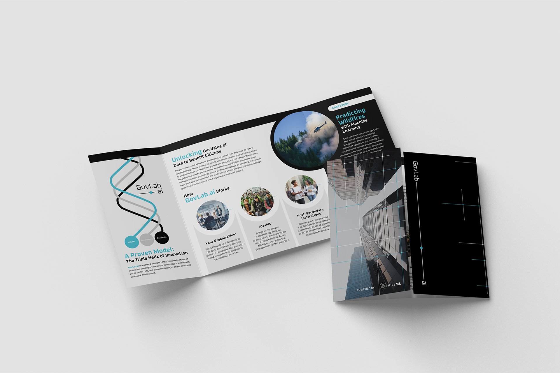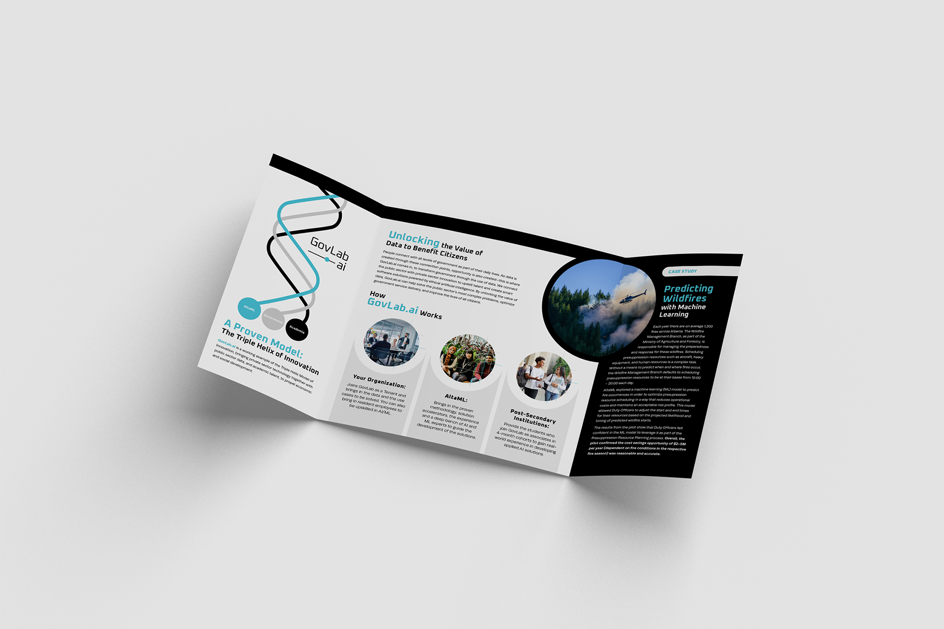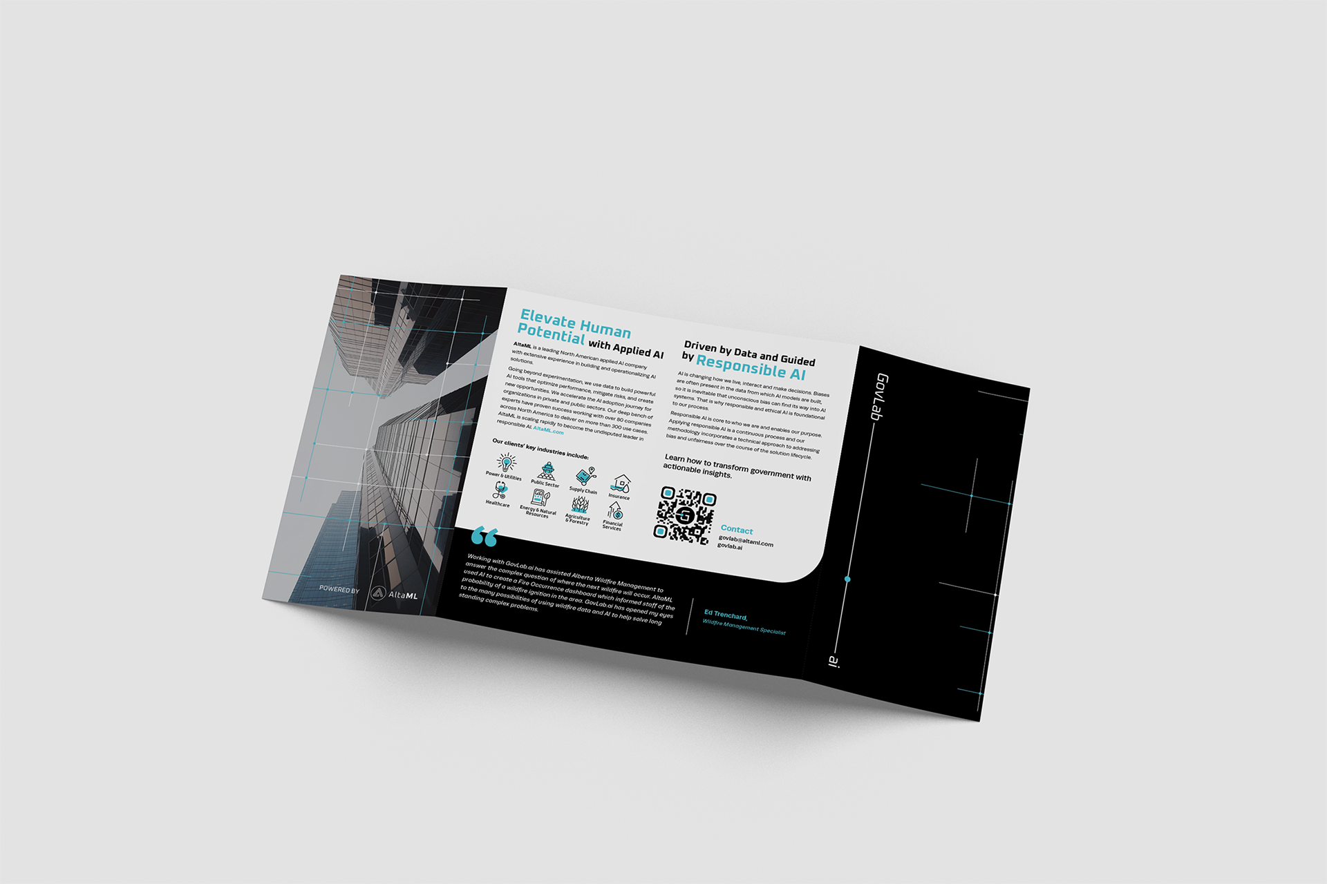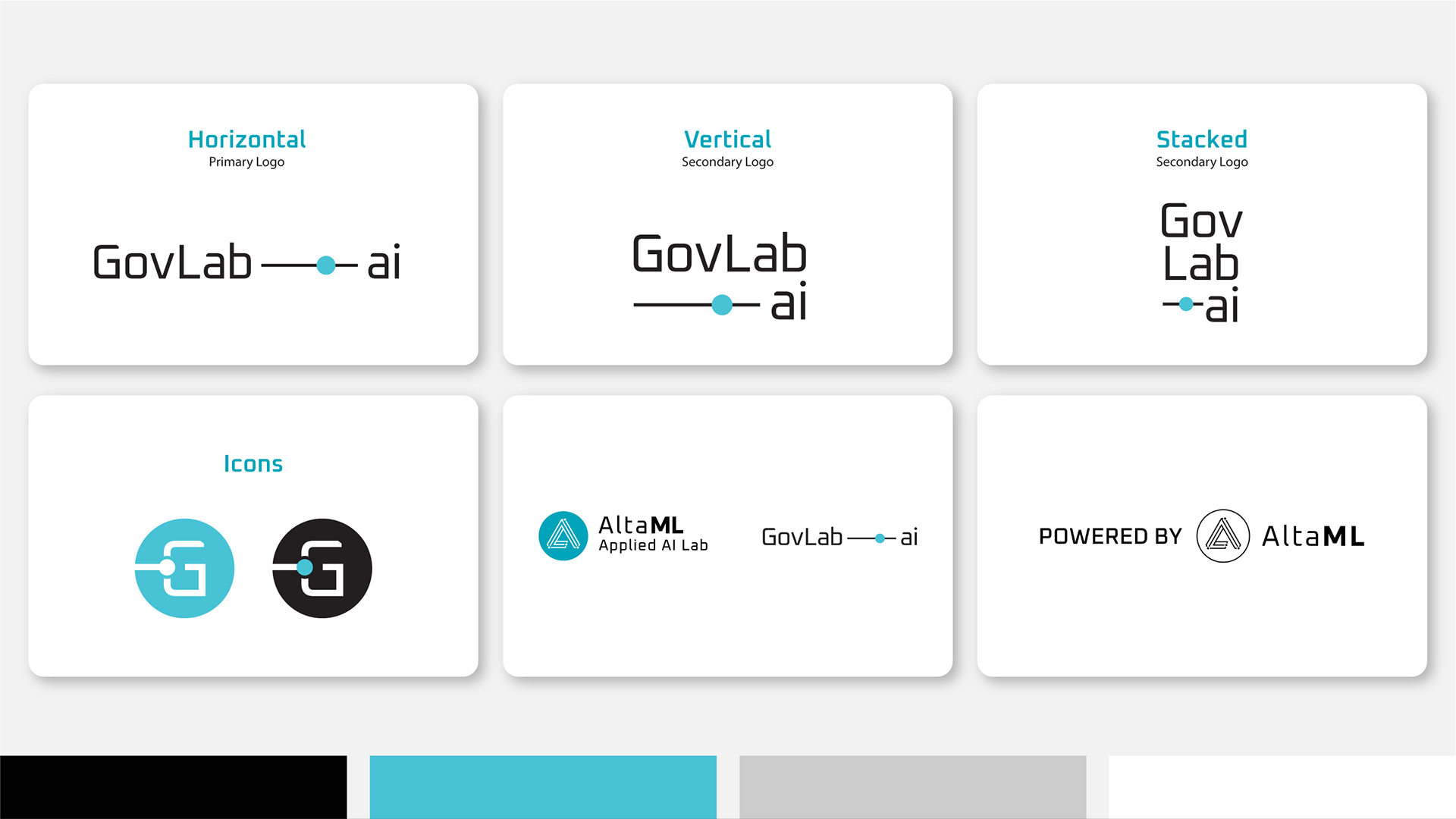 As part of AltaML, I expanded GovLab.ai’s brand identity, originally developed by Daughter, by creating secondary logo assets, icons, and additional branding elements. My work included designing presentations, event materials, print assets, and web pages using Figma and Webflow.